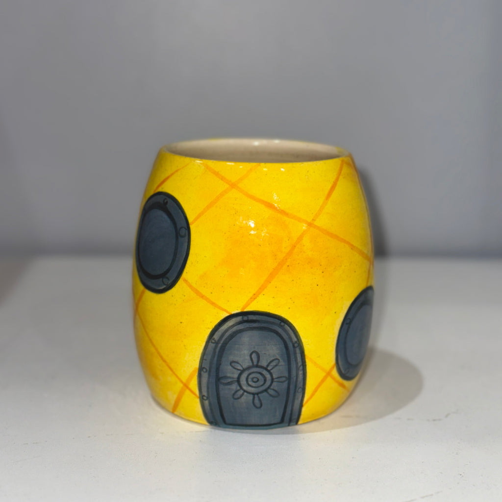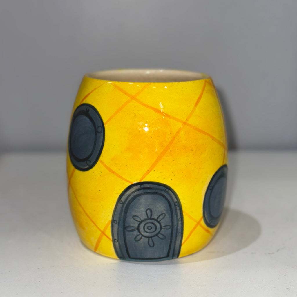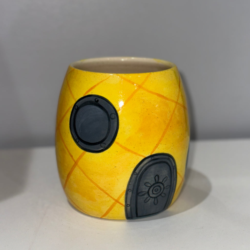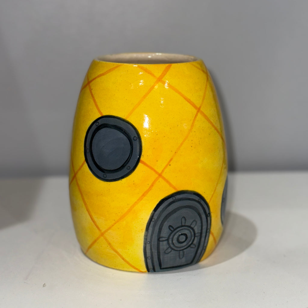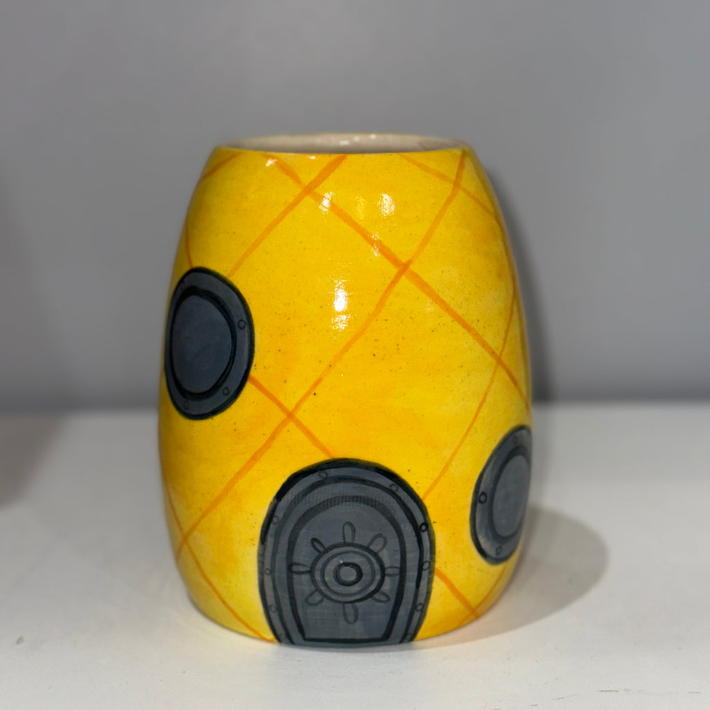 Bring a touch of Bikini Bottom into your home with this Spongebob Pineapple Planter, featuring a fun and detailed hand-painted design. Perfect for housing aloe, succulents, or any of your favorite plants, this planter adds a playful pop of color to any space. Drainage holes are included on the base. Available in large and medium sizes, each one is a unique piece. Fired to Cone 6 and dishwasher safe for lasting durability. Add a quirky twist to your plant collection today! πΏπβ¨